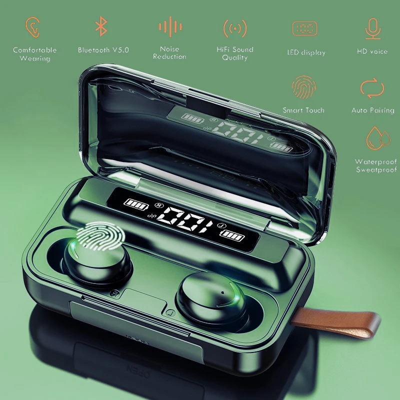 TWS-наушники F9 с поддержкой bluetooth 5,0, 2200, зарядным футляром...