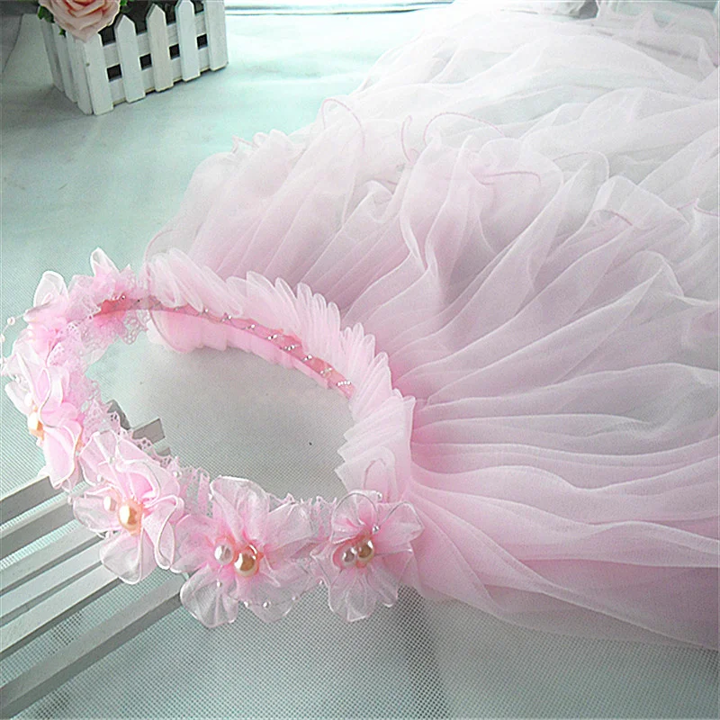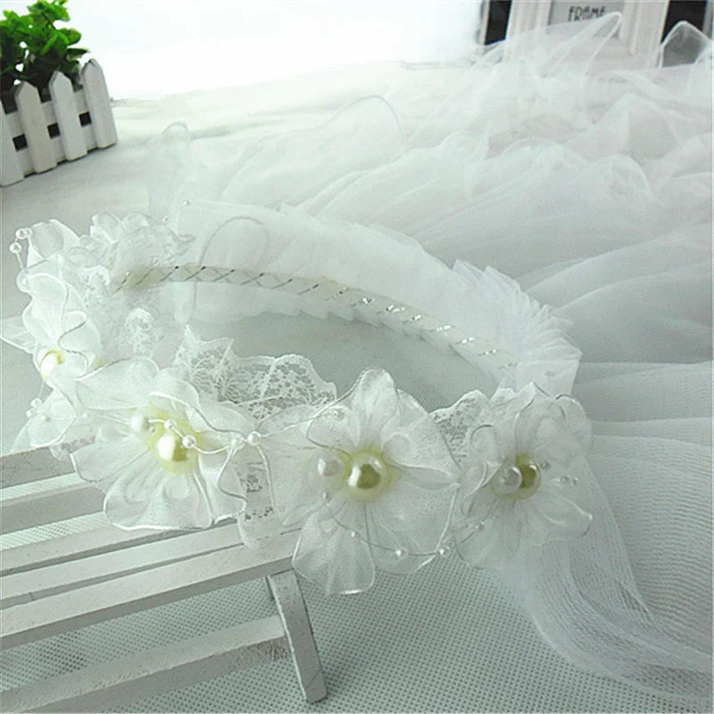 Повязка на голову с вуалью и цветами для девочек, свадебный головной убор принцессы, аксессуары для волос, сувениры на день рождения, Рождество и Пасху