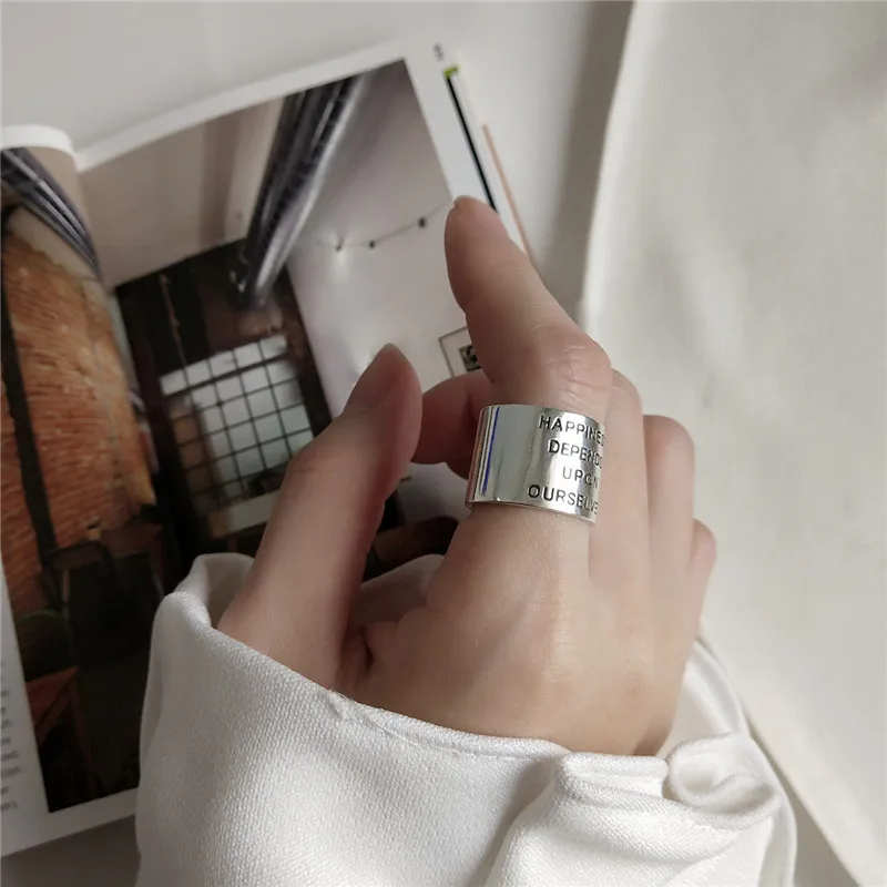 Винтажное широкое кольцо Yungqi с надписью счастье зависит от себя Регулируемые кольца для женщин и девушек ювелирные изделия в стиле бохо женские кольца