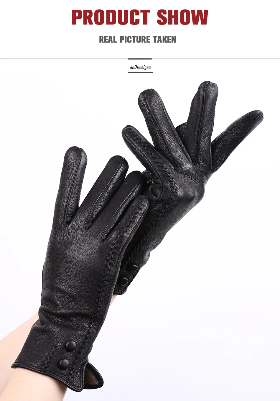 Модные женские перчатки из овчины, Брендовые женские кожаные перчат...