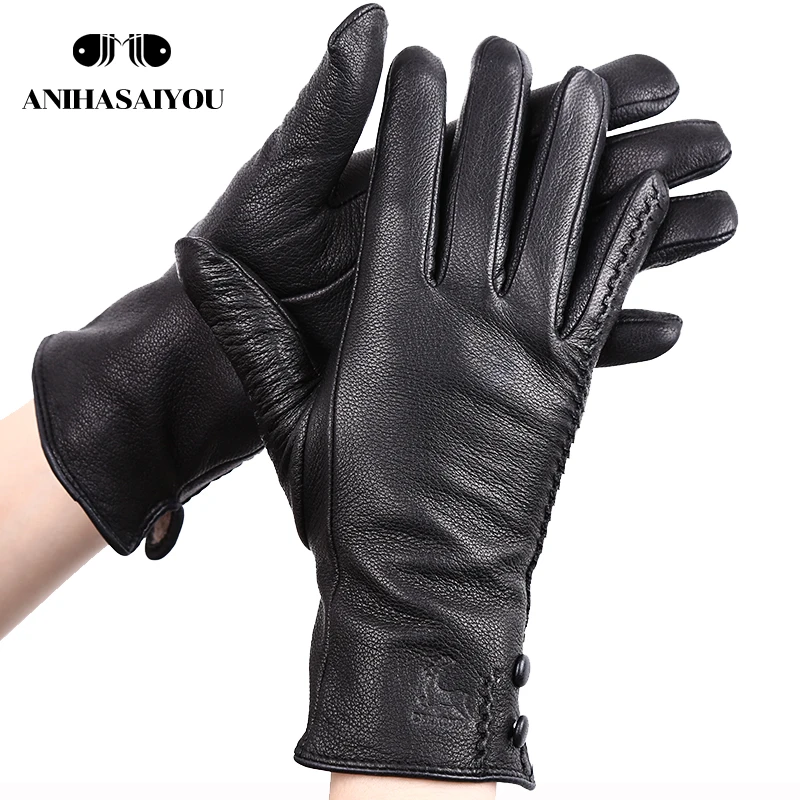 Женские перчатки из натуральной кожи с имитацией оленя, модные зимн...