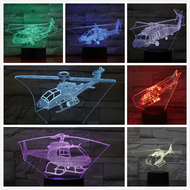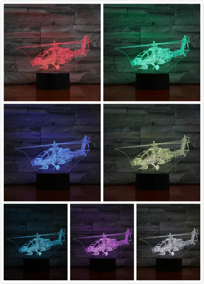 Модель вертолета, самолета, Usb, 3D светодиодный ночсветильник, иллюзия, лампа истребитель, боевой самолет, настольная лампа, прикроватный подарок