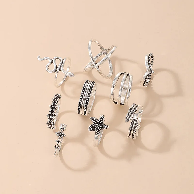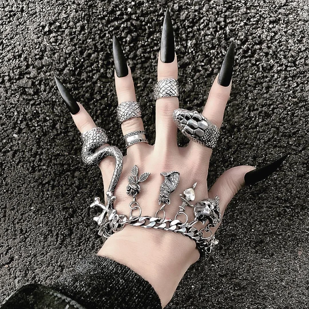 Набор женских колец в стиле ретро под старинное серебро, в готическ...