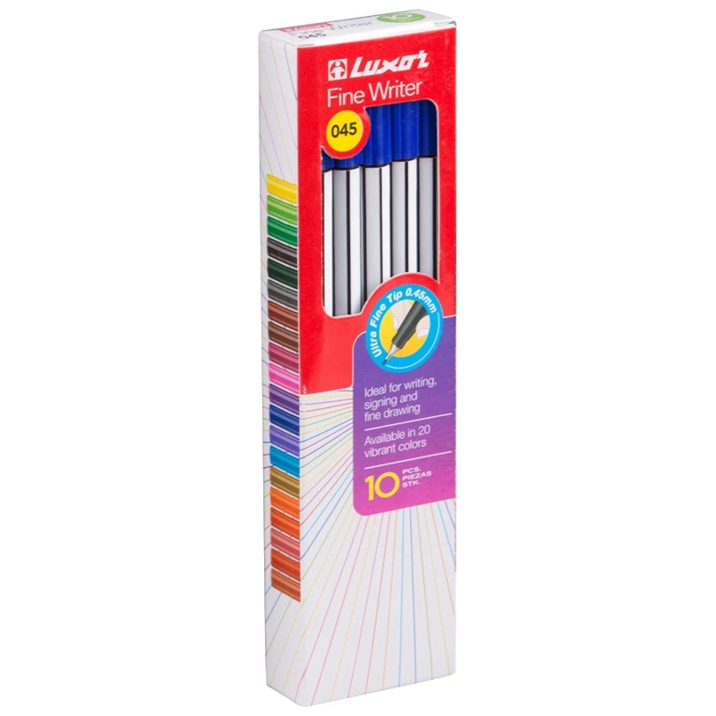 Ручка капиллярная Luxor "Fine Writer 045" синяя, 0,8мм, 10 штук в упаковке