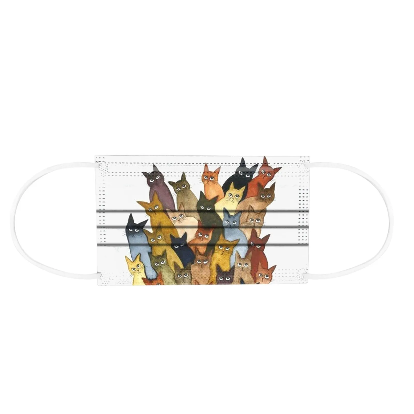 Одноразовая маска для лица с принтом кота для мужчин и женщин, 3-слойная маска с петлями для ушей, дышащая маска для Anti-PM2.5, 10 шт.