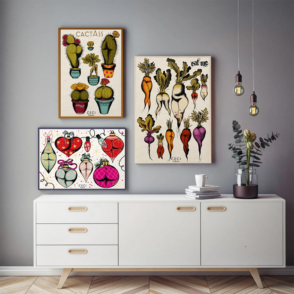 Сексуальные кактас морковь понос Холст принты и плакат рождественск...
