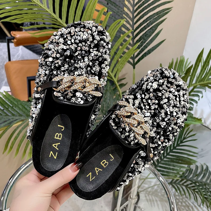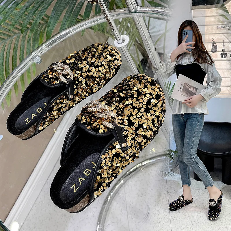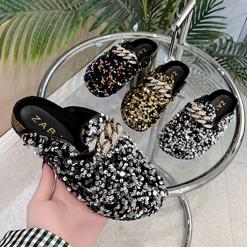 Шлепанцы женские с металлической цепочкой, повседневные туфли для д...