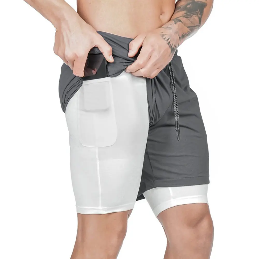 Мужские шорты для бега, бега, тренажерного зала, фитнеса, быстросохнущие пляжные шорты 2 в 1, мужские летние спортивные тренировочные шорты, бермуды