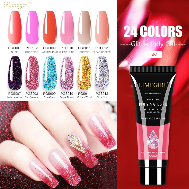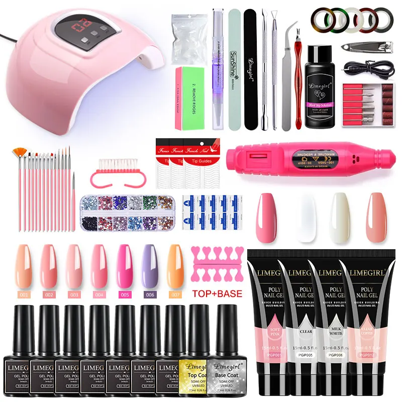 Набор УФ-гелей Limegirl с лампой, розовый прозрачный УФ-гель лак для ногтей, быстрое наращивание ногтей, набор твердых гелей для ногтей