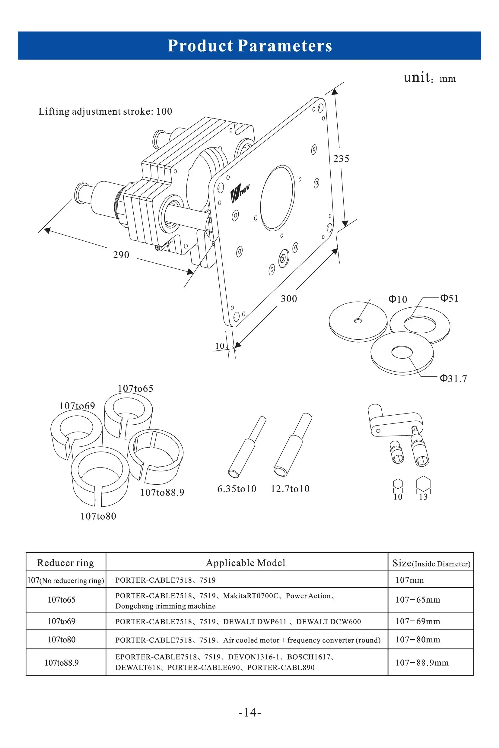 Фрезерный подъемник Wnew для деревообработки, 107-80 мм, с алюминиевой вставной пластиной
