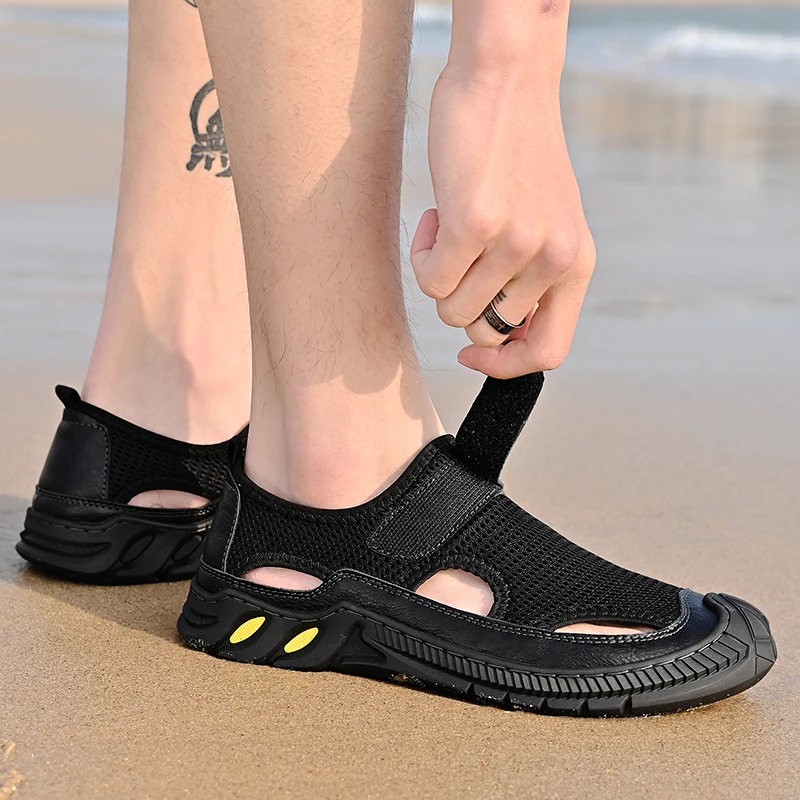 Сандалии мужские сетчатые, классические пляжные Босоножки ручной работы, модные повседневные Роскошные уличные римские сандалии, цвет серый, большие размеры, лето 2022