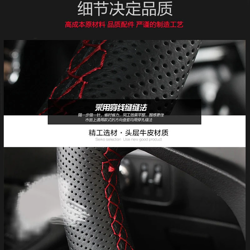 Для Changan cs75 плюс EADO блок cs35 cs55 cs15 Alsvin v3 cx20, Прошитые вручную; Руль кожаный чехол углеродное волокно-трость с защитным козырьком