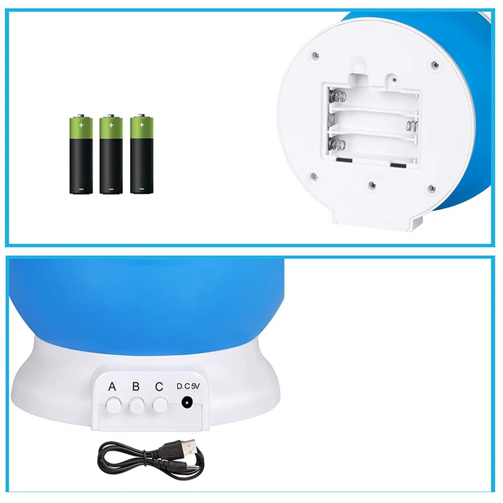 Ночник-светильник для детей4 светодиодный лампы, варианты нескольких цветов5 разных цветовНе нагревайтесь и не Горите даже во время бега всю ночьУстойчивый Ночной светильник/Вращающаяся Луна Звезда проекционная лампаОсобенности1. Идеально подходит для украшения свадьбы, дня рождения, вечеринок. Отлично подходит для романтической ночной лампы и декоративный светильник!2. Очень романтичная ночь, полный искреннего подарка3. Питание от 4 батарей AAA (не входят в комплект) или usb-кабеля (адаптер не входит в комплект).4. Это новая популярная Лампа для проектора cosmos Star, которая поможет вам вернуть вселенную домой, подарит вам кусочек неба, который меняет цвет, без необходимости трудно найти поле, вращая свое основание, там будет разное красочное пространство, найдите созвездие, которое вам принадлежит.Технические характеристикиМатериал: АБС-пластикТип переключателя: 3 кнопкиНапряжение: 5 ВСветильник источник: 4 светодиодный лампыРуководство по эксплуатации:Вы можете выбрать различные методы работы с питанием, usb-кабель или аккумуляторы:1. Вставьте 4 * AAA батареи в держатель батареи с правильной полярностью, затем восстановите крышку аккумулятора.2. 【Используйте его в качестве лампы, вам нужно надеть крышку. Если вы хотите, чтобы это был проектор, просто снимите крышку 】3. Три модели:【A режим: 】 Ночной светильник (Теплый светильник) Нажмите A снова отключит модель.【B режим: 】 переключение цвета на светильник (Монохромный светильник или цветной светильник). Примечание: Нажмите кнопку B 9 раз подряд, Модель B отключится.【C режим: 】это Управление поворотным переключателем (поворот или не поворот свободно выбран) Примечание: Нажмите C снова отключит вращение.Примечание: 1. Обратите внимание, что usb-кабель и аккумуляторы не могут использоваться одновременно.ПосылкаЗвездный проектор-1 шт.1 х USB кабель1 x Руководство пользователяТеплый совет: повреждение внешней упаковки очень распространено во время транспортировки.Фотографии товараНастоящая вещь намного лучше, чем на фотографиях!Настоящая вещь намного лучше, чем на фотографиях!Настоящая вещь намного лучше, чем на фотографиях!