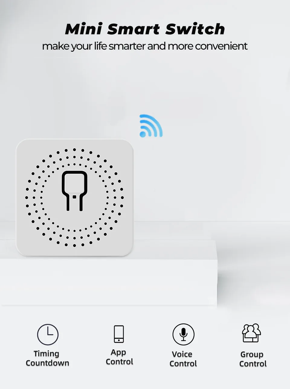 Умное устройство включениявыключения Wi-Fi MINI16A, двойной переключатель, таймер со скрытым голосовым управлением