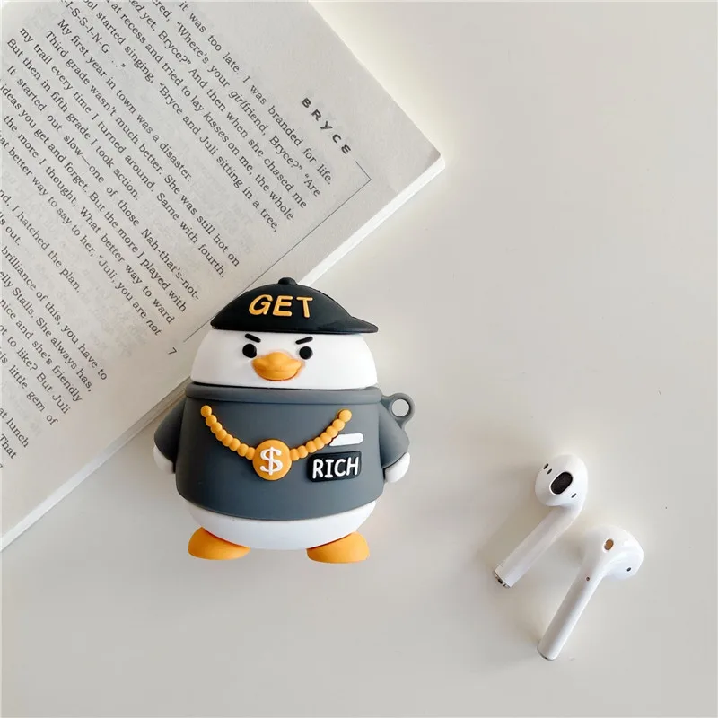 Чехол-накладка для наушников AirPods 1, 2 Pro, силиконовый, с объемным изображением дракона, утки, свиньи, коровы, Беспроводная зарядка