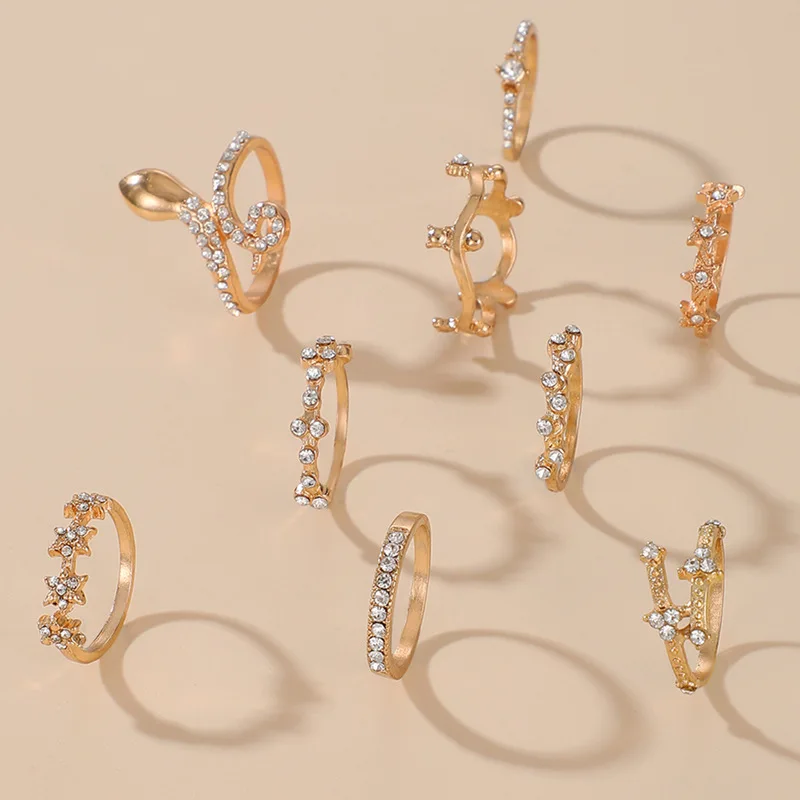 1 комплект модных колец со звездами, луной, лотосом, змеей и циркон...