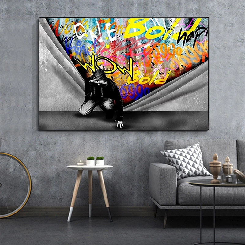 Уличное граффити Бэнкси-арт, постеры на холсте, настенные картины д...
