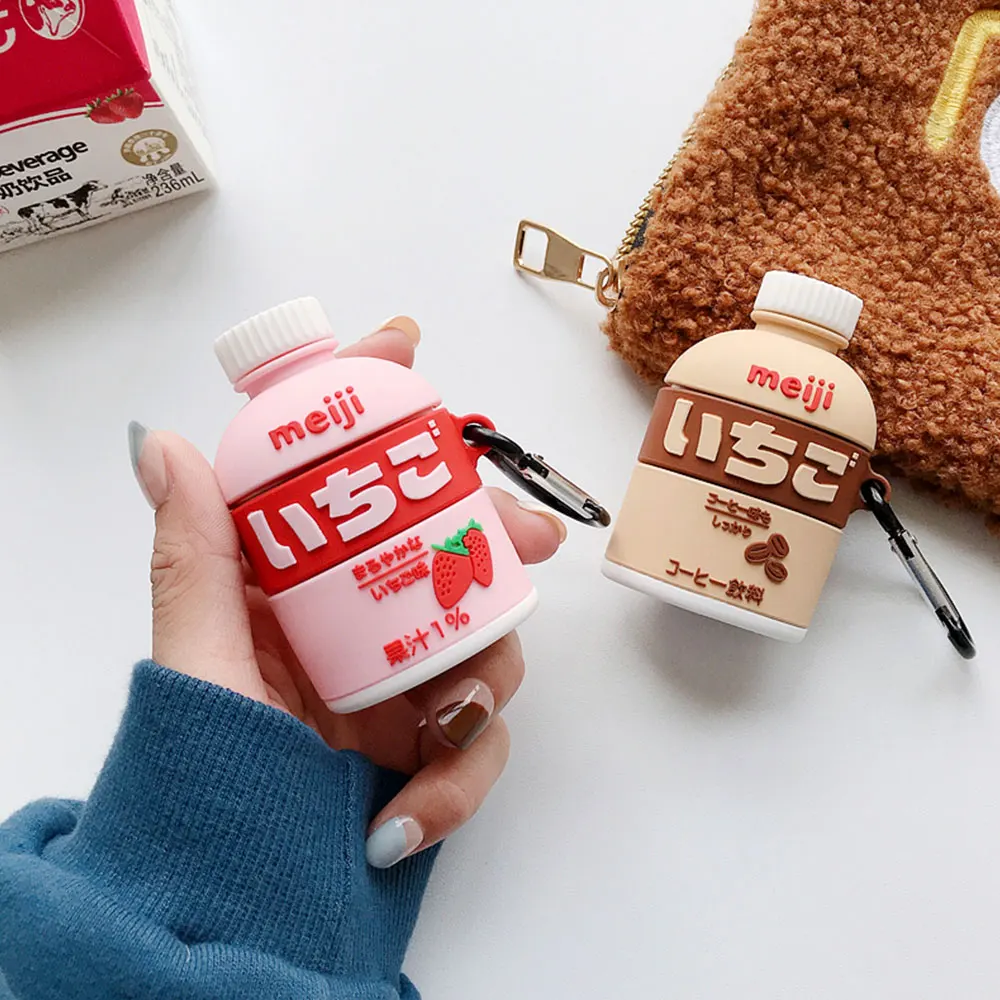 3D наушники чехол s для AirPods чехол милые бутылки клубника молока для переноски 123 защитную крышку для Earpods чехол для наушников Чехол
