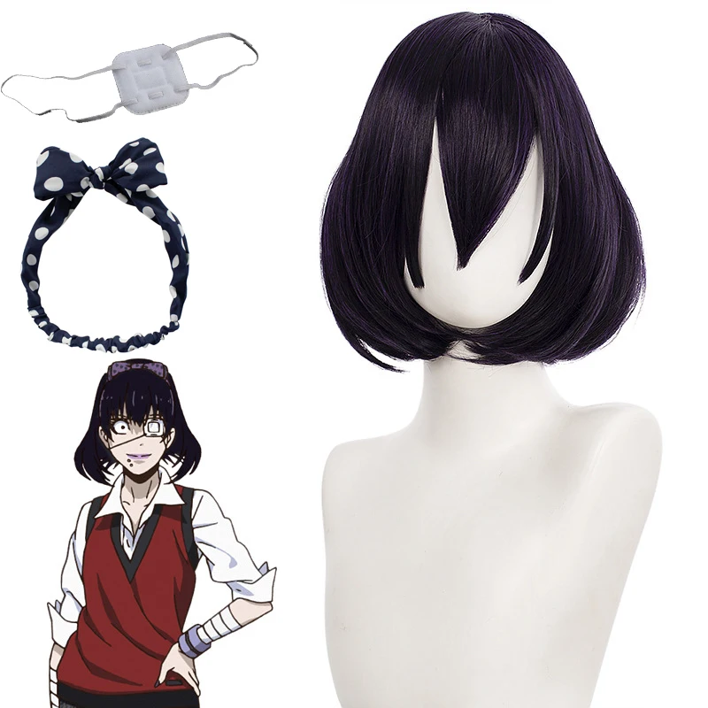 Парик для косплея какейгуруи мидари Икисима, короткий, черный, фиолетовый, Женский синтетический ворс, для Хэллоуина, фотосессия