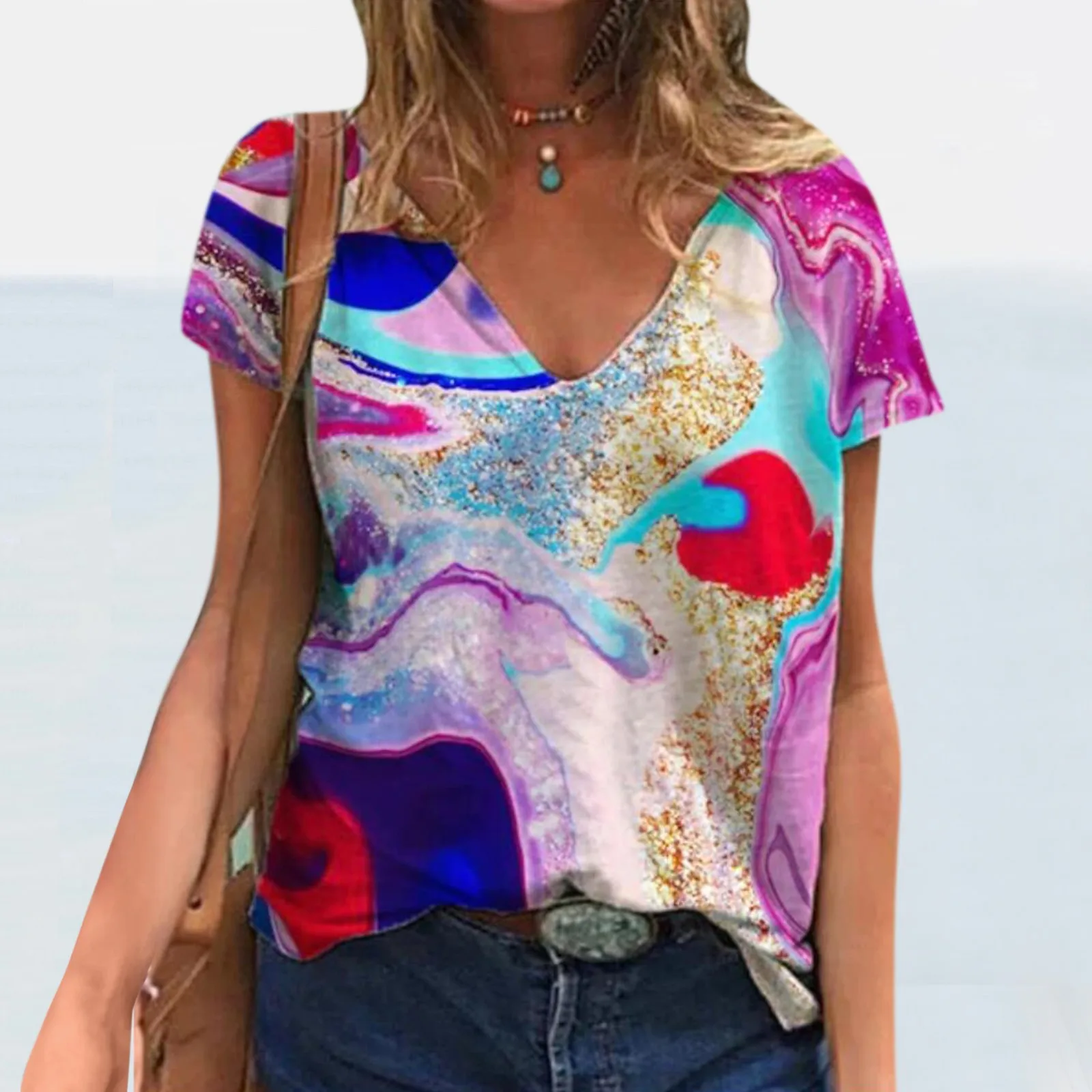 Женская цветная Пляжная футболка с v-образным вырезом и короткими рукавами