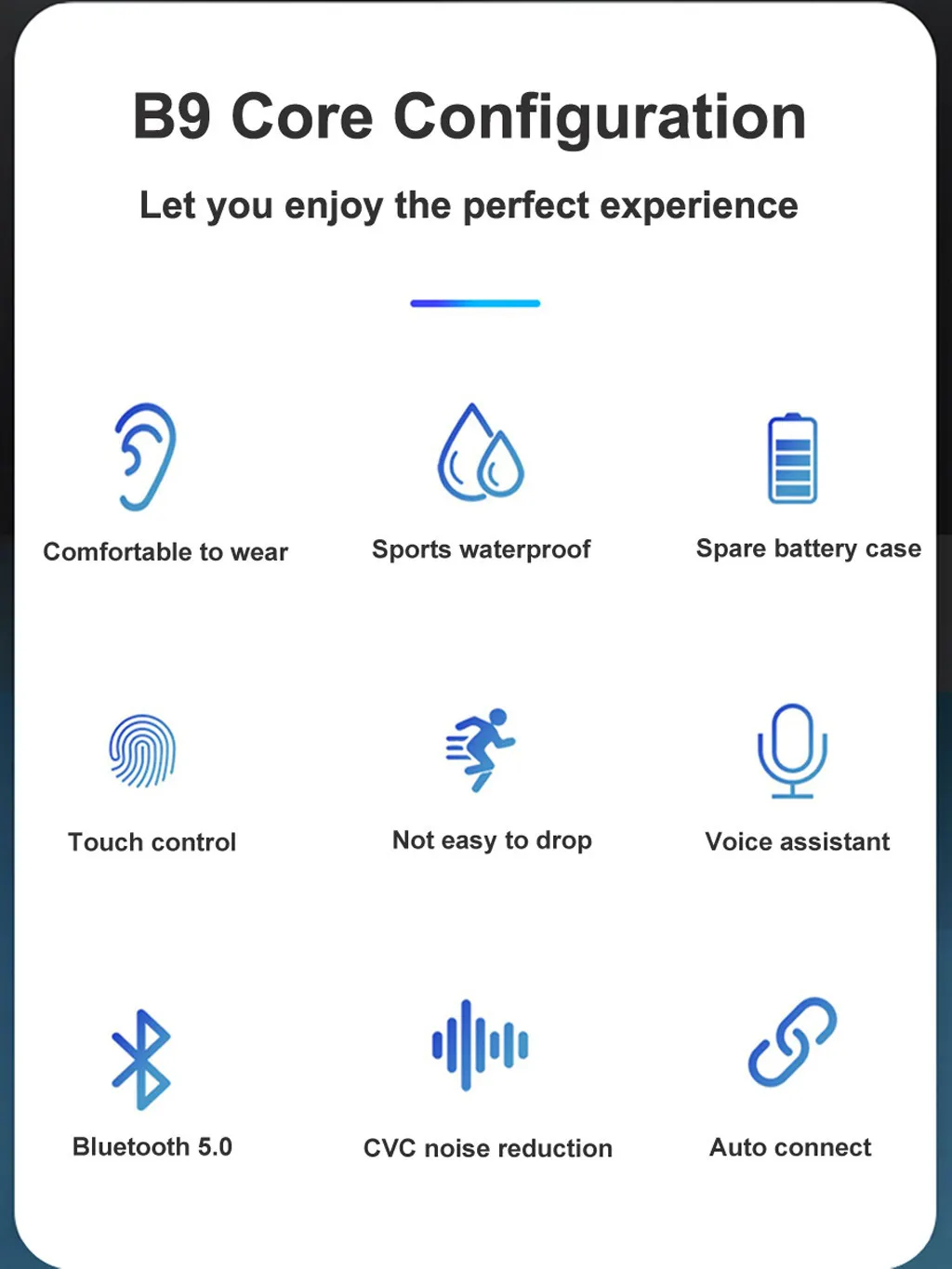 1. Бинауральная беспроводная, 8D стерео Звук, беспроводной Bluetooth новое обновление поставляется 2. Четырехъядерный звук, восстановление оригинального звука, полноэкранный композитный динамик, Вы никогда не сможете восстановить оригинальный звук. 3. Мастер-раб переключатель, забрать и слушать, прорваться через традиционные Наушники и подсоединение наушников, оба master-headphones, могут быть Подключен к мобильный телефон в любое время. 4. Двухъядерный быстрый заряд, может заряжать мобильный телефон, не только обеспечивает мощный Питание для гарнитуры, но также заряжает мобильный телефон 5. Глубокие водонепроницаемые наушники могут быть водяными, высокое качество контроля, действительно достичь Уровень XP водонепроницаемый/пыленепроницаемый, не бойтесь глубокой воды. 6.5.0 Bluetooth стабильное полное обновление ядра, V50 чип обновления ядра, более стабильный Передача, более простое подключение, легкое прослушивание и пение. Звонки больше Стабильный, игры не 7. Интеллектуальный цифровой дисплей хорошо виден. Сила левого и Правильные наушники и зарядный отсек четко видны с первого взгляда. Зарядка отсека питания, левый и правый наушник питания 8. Полностью совместим с bluetooth-подключением Поддержка нескольких платформ приложений, Расстояние соединения передачи Bluetooth до 10 м Чип: BT88xx Версия Bluetooth: 5,0 Динамик для наушников: 88 мм Емкость аккумулятора для наушников: 40 мАч Время зарядки наушников: 0,8 часов Емкость аккумулятора: 1800 мАч Время зарядки внешний зарядный отсек: 1,2 часов Расстояние передачи:> 10 м Время работы в режиме разговора: 3 часа Время непрерывной работы: 3,2 часов Система поддержки: все устройства с поддержкой Bluetooth и мобильные телефоны Упаковочный лист: 1 x чехол для зарядки 2 x наушники 1 кабель для передачи данных