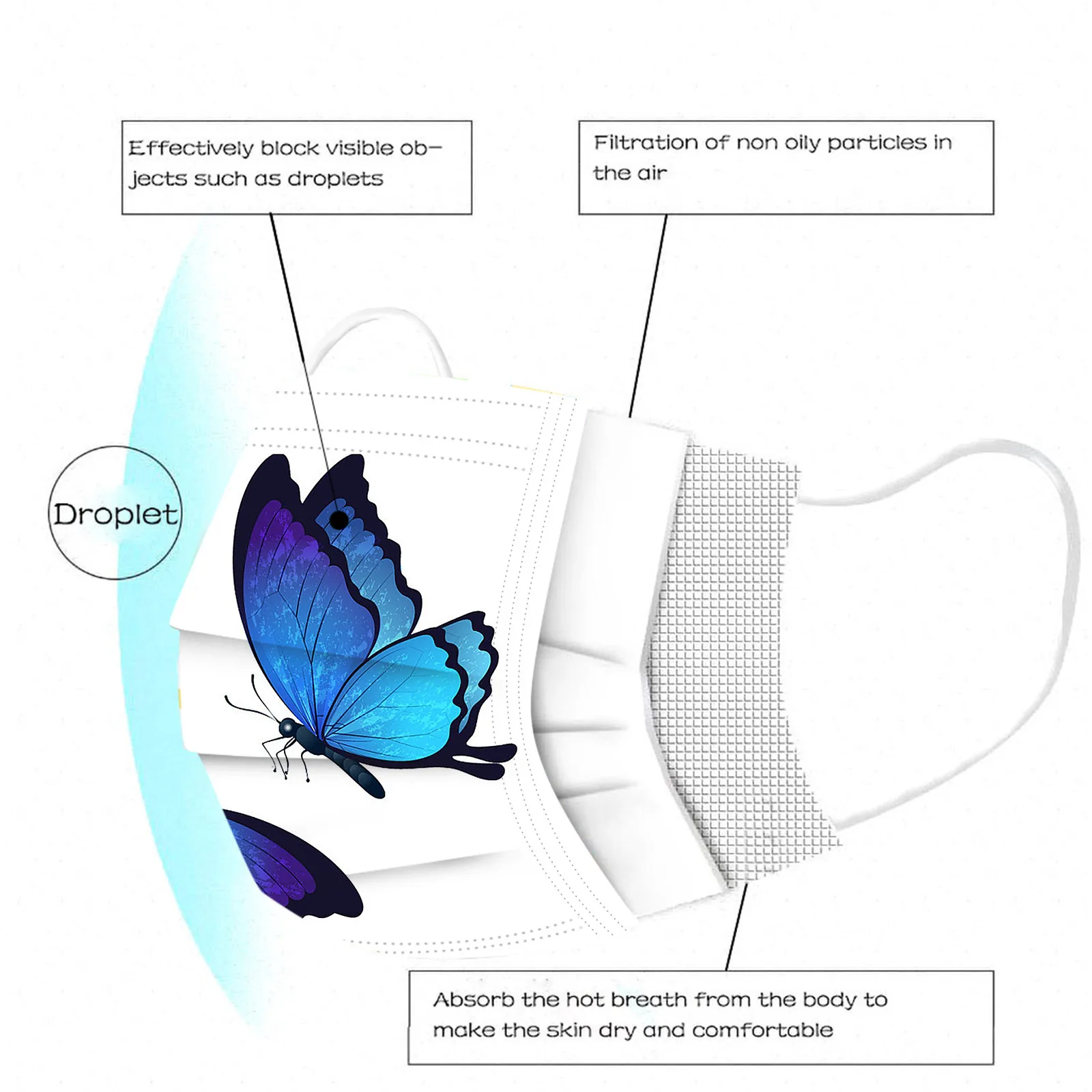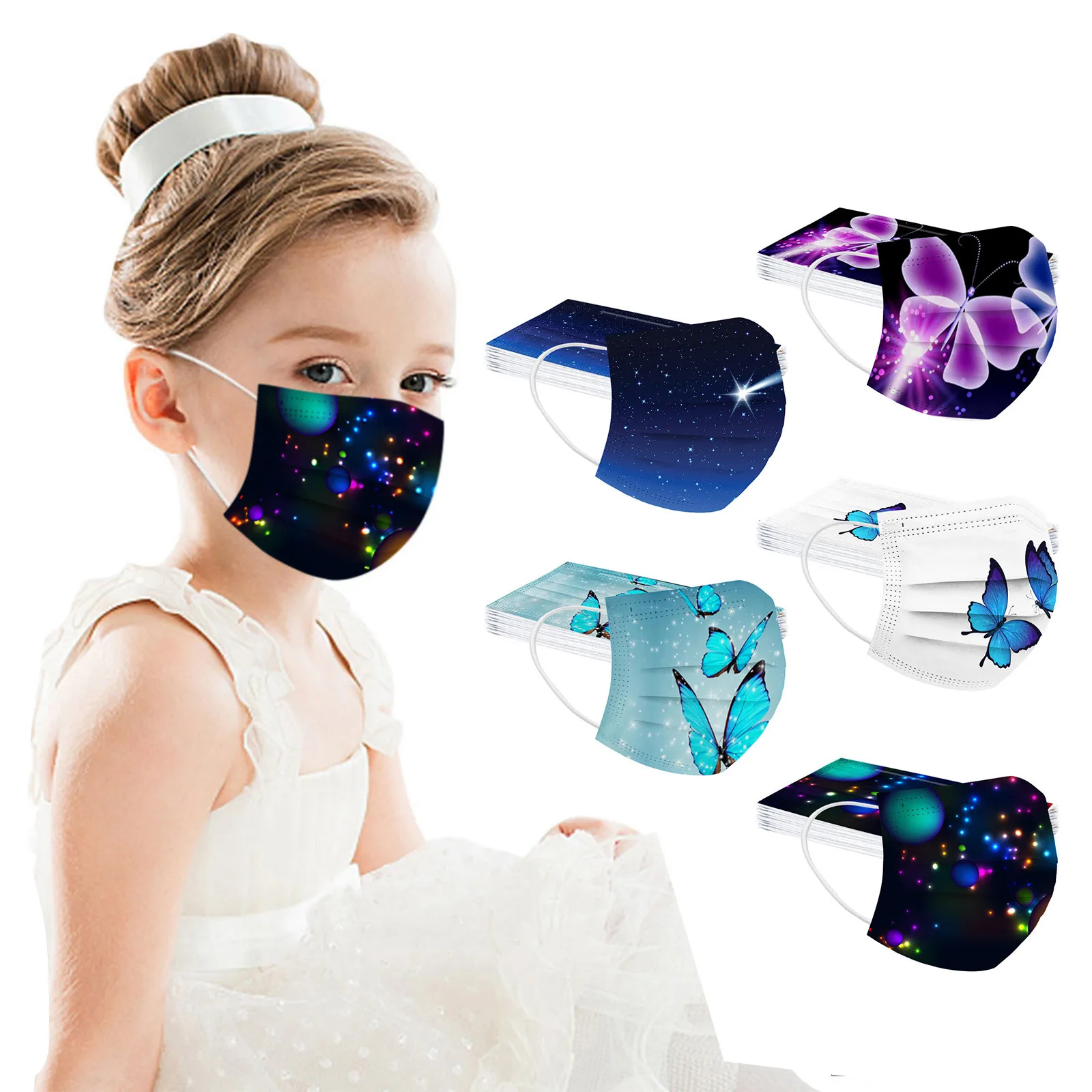 С рисунком бабочки, одноразовые ребенка защитная маска из дышащего материала и Защищённая от попадания капель 3 слоя Фильтр Нетканая Маска Тушь для ресниц 50 штук #50