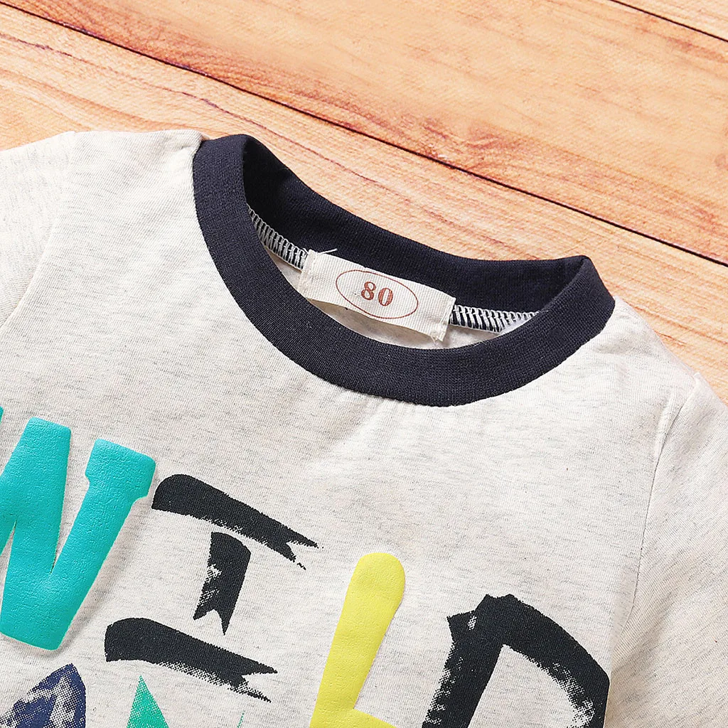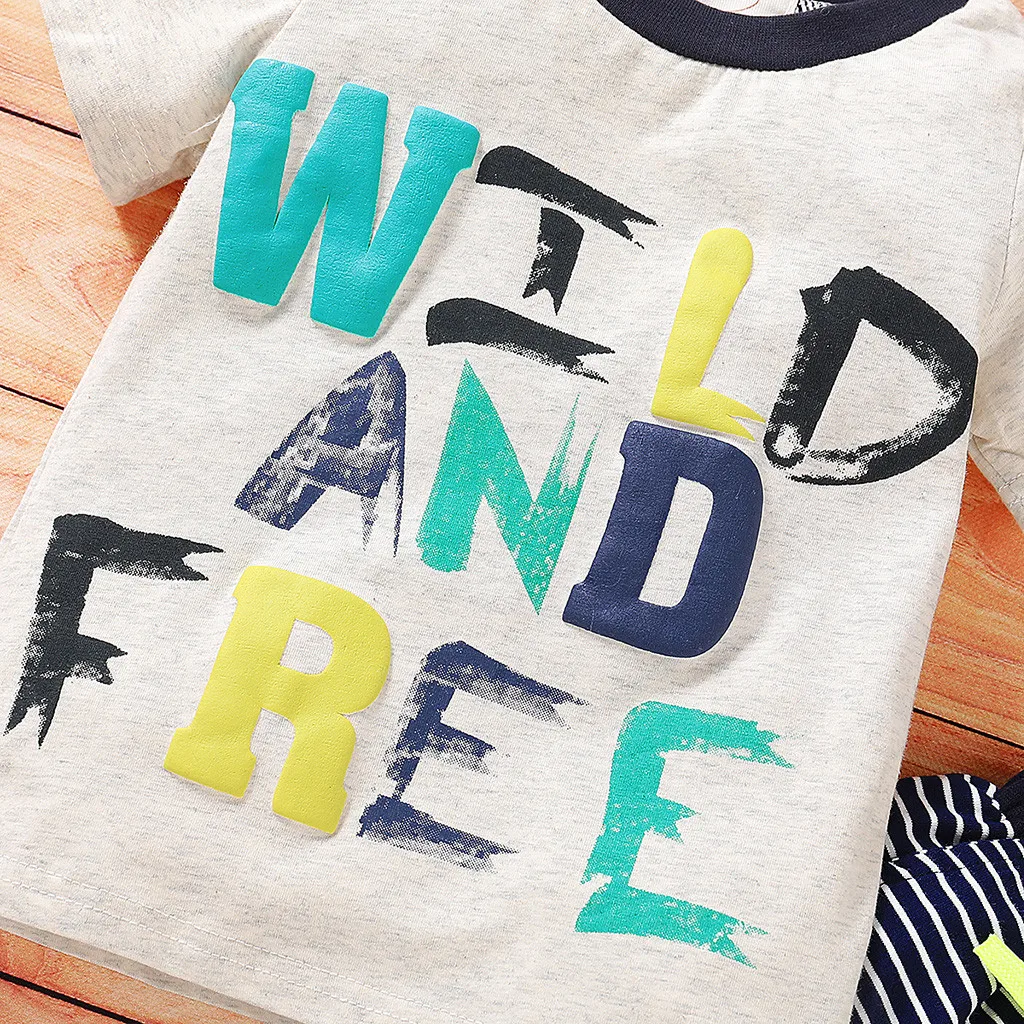 Комплекты одежды для маленьких мальчиков футболка с буквенным принтом топы + комплект с шортами в полоску детская одежда для новорожденных
