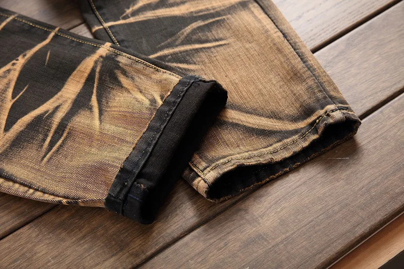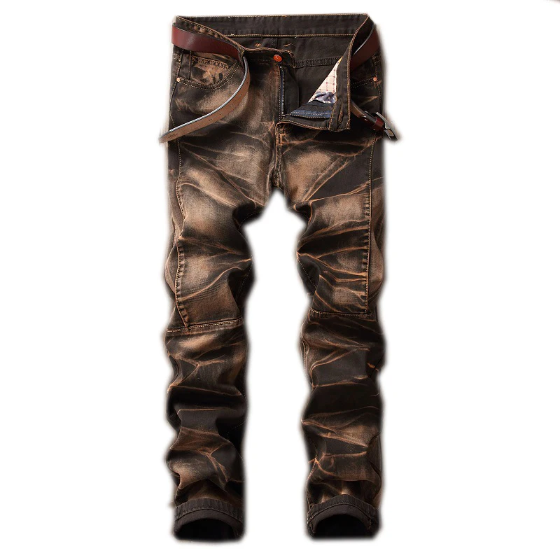 2021 высокое качество Для мужчин повседневные джинсы с покрытием тонкие прямые плиссированные джинсы для байкеров штаны мужские джинсовые повседневные штаны размера плюс 42