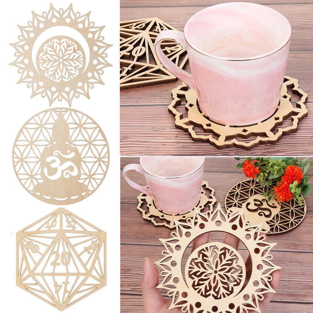 1 шт. чакра цветок жизни энергетический коврик Натуральный символ дерево геометрические края круглые резные горки для камня кристалл набор DIY Декор