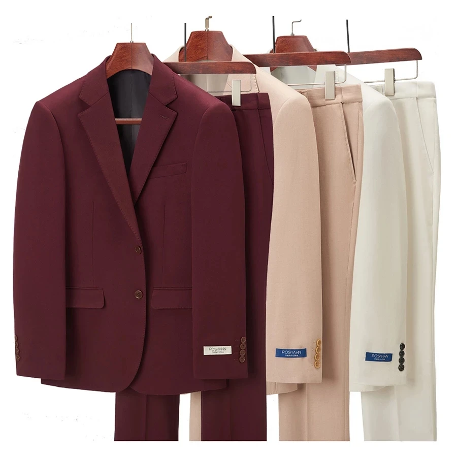 Последний свадебный костюм для жениха, белый, бордовый, деловой повседневный мужской костюм, весна-осень, комплект из 2 предметов, приталенное пальто, штаны