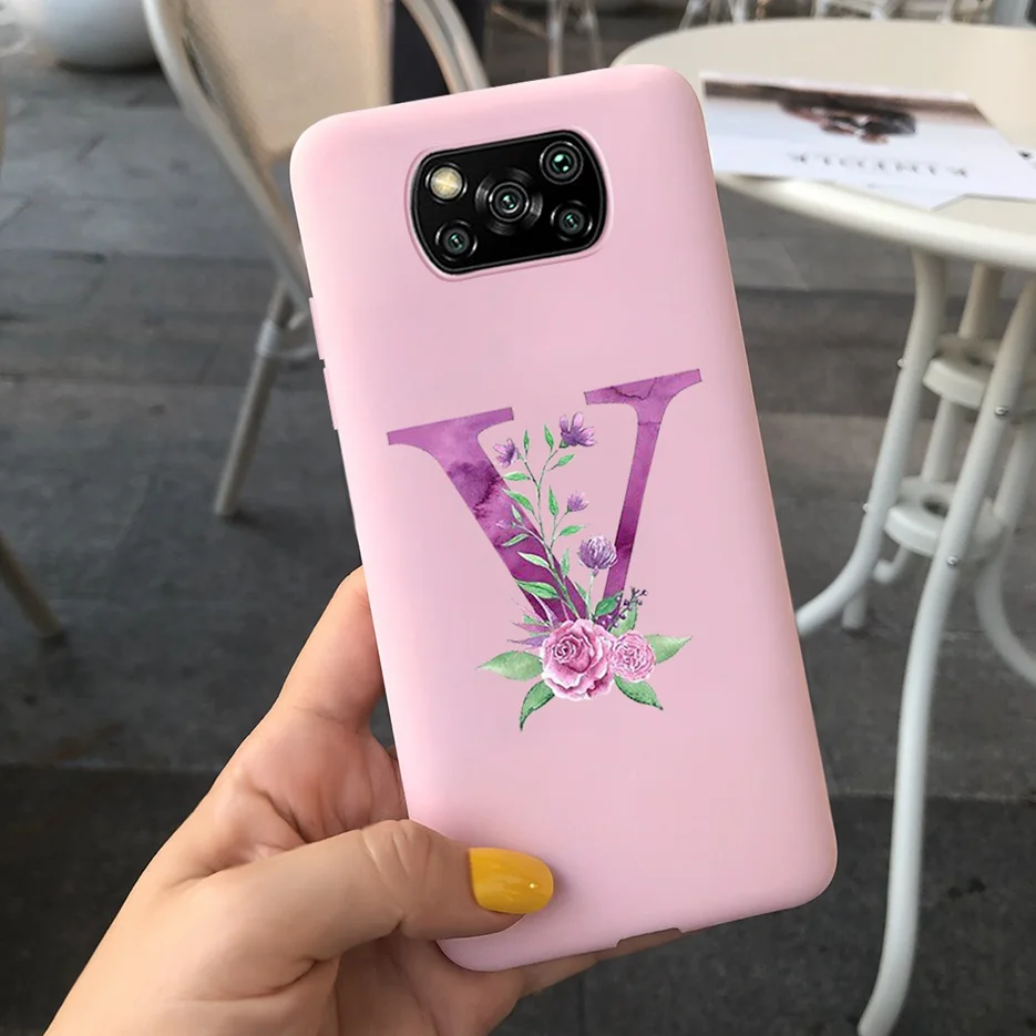 Чехол для Xiaomi Poco X3 NFC F3 M3, милый чехол с буквами, задняя крышка, мягкие ТПУ чехлы для телефонов Xiaomi PocoX3 Pro NFC Poco F3 M3, оболочка, бампер