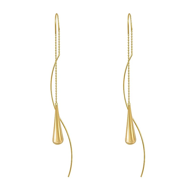 Новый корейский дизайн модные ювелирные изделия 14K позолоченные циркониевые простая Капля воды Подвески элегантные длинные тонкие женские серьги