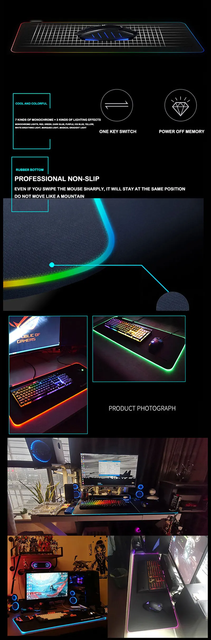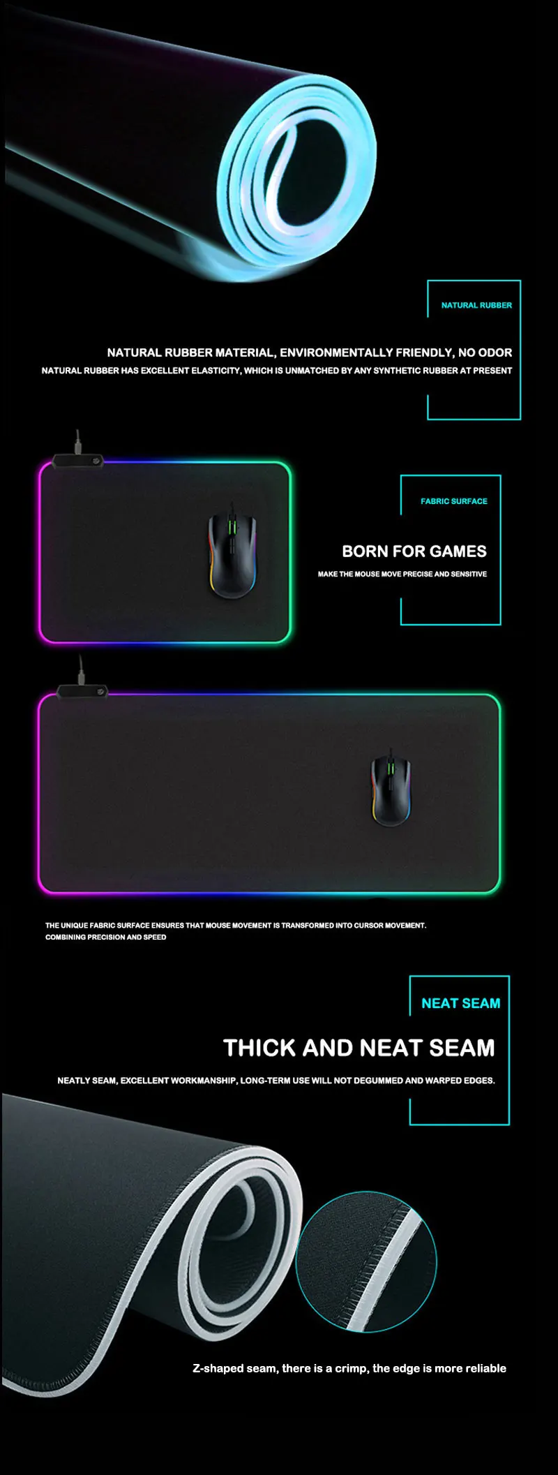 Игровой коврик для мыши со светодиодной подсветкой, большой RGB-чехол для клавиатуры, нескользящая резиновая основа, компьютерный коврик, Настольный коврик для ПК, игровой коврик с подсветкой