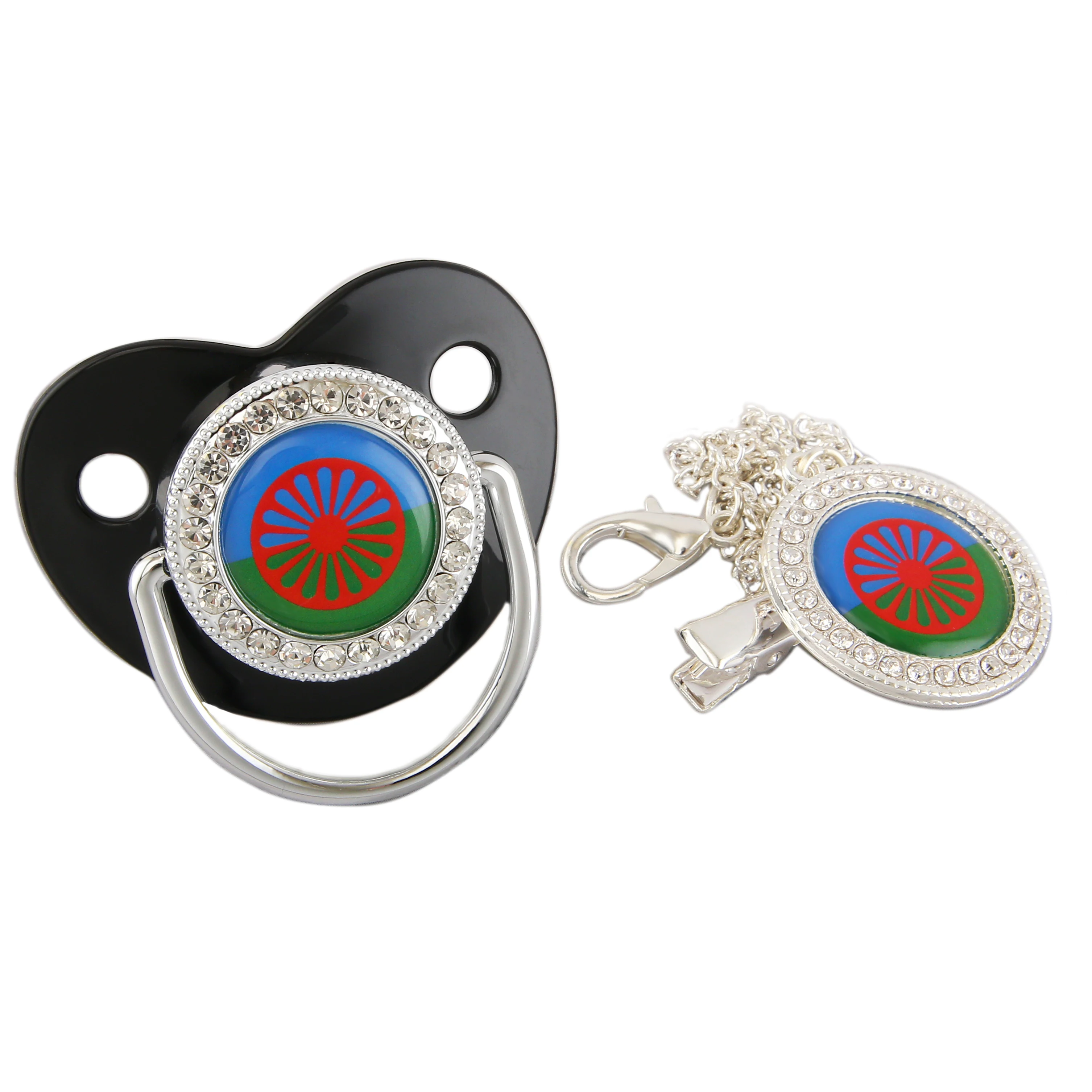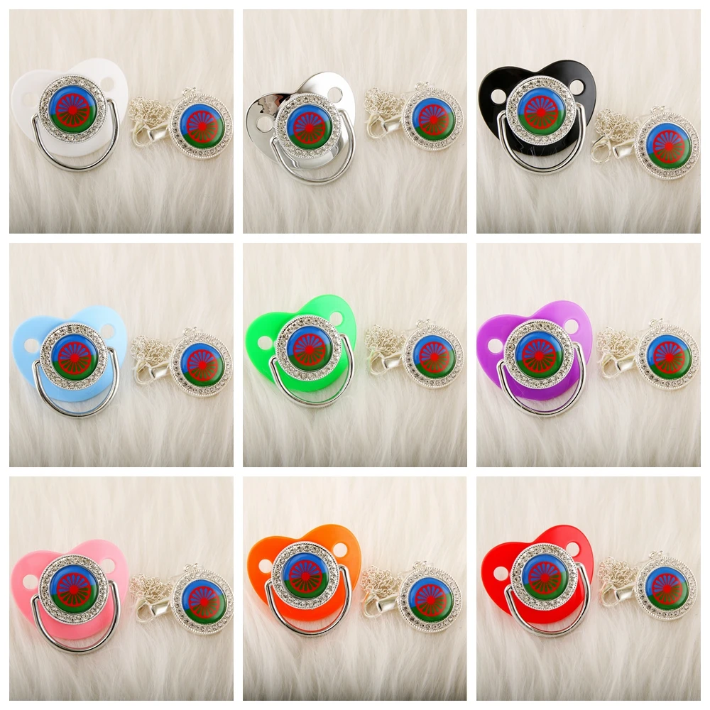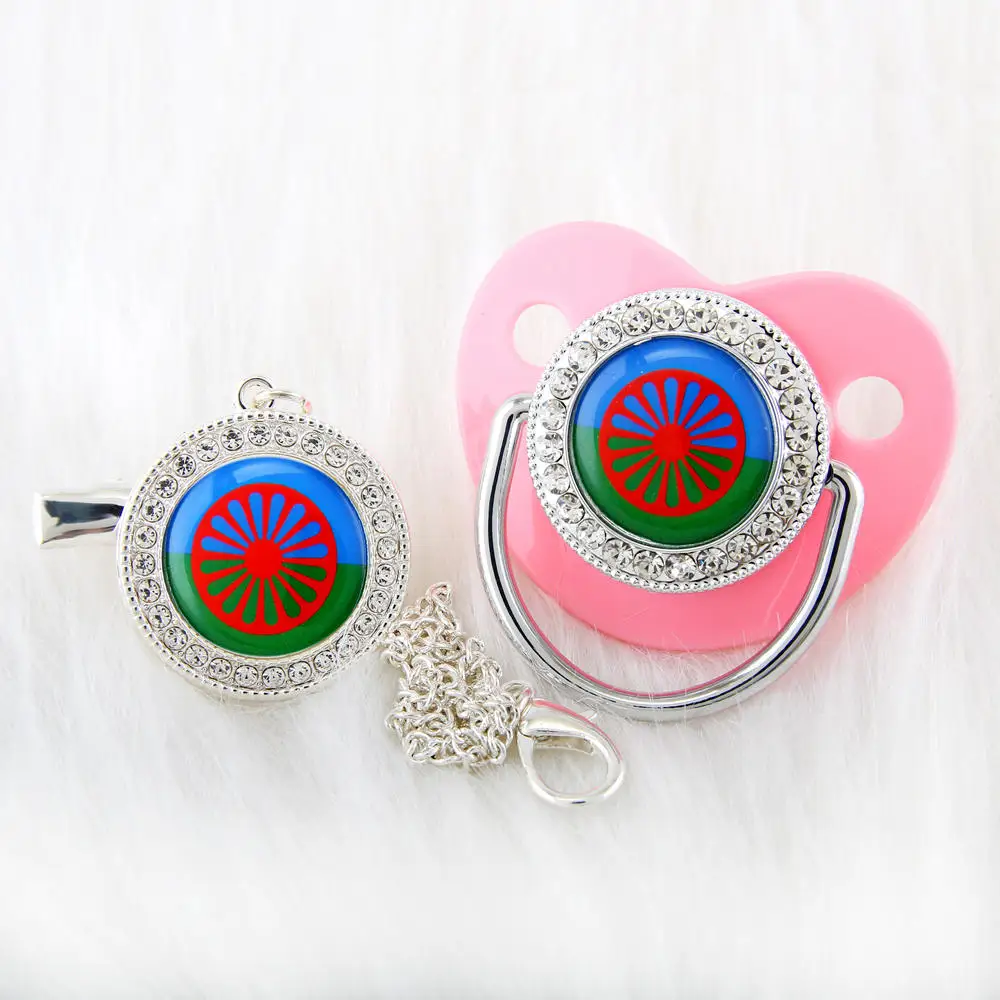 Серебристая детская пустышка с зажимом на цепочке, романтическая тема с флагом ромы, пустышка для новорожденных, соска для детей 0-18 месяцев