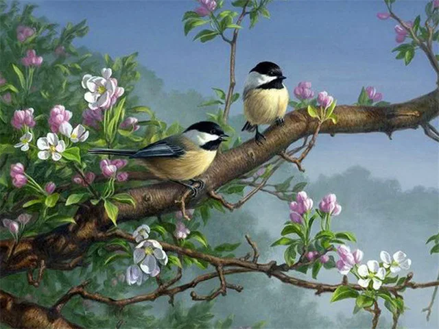5d алмазная живопись, полная выкладка, цветок, птицы, пейзаж, мозаи...