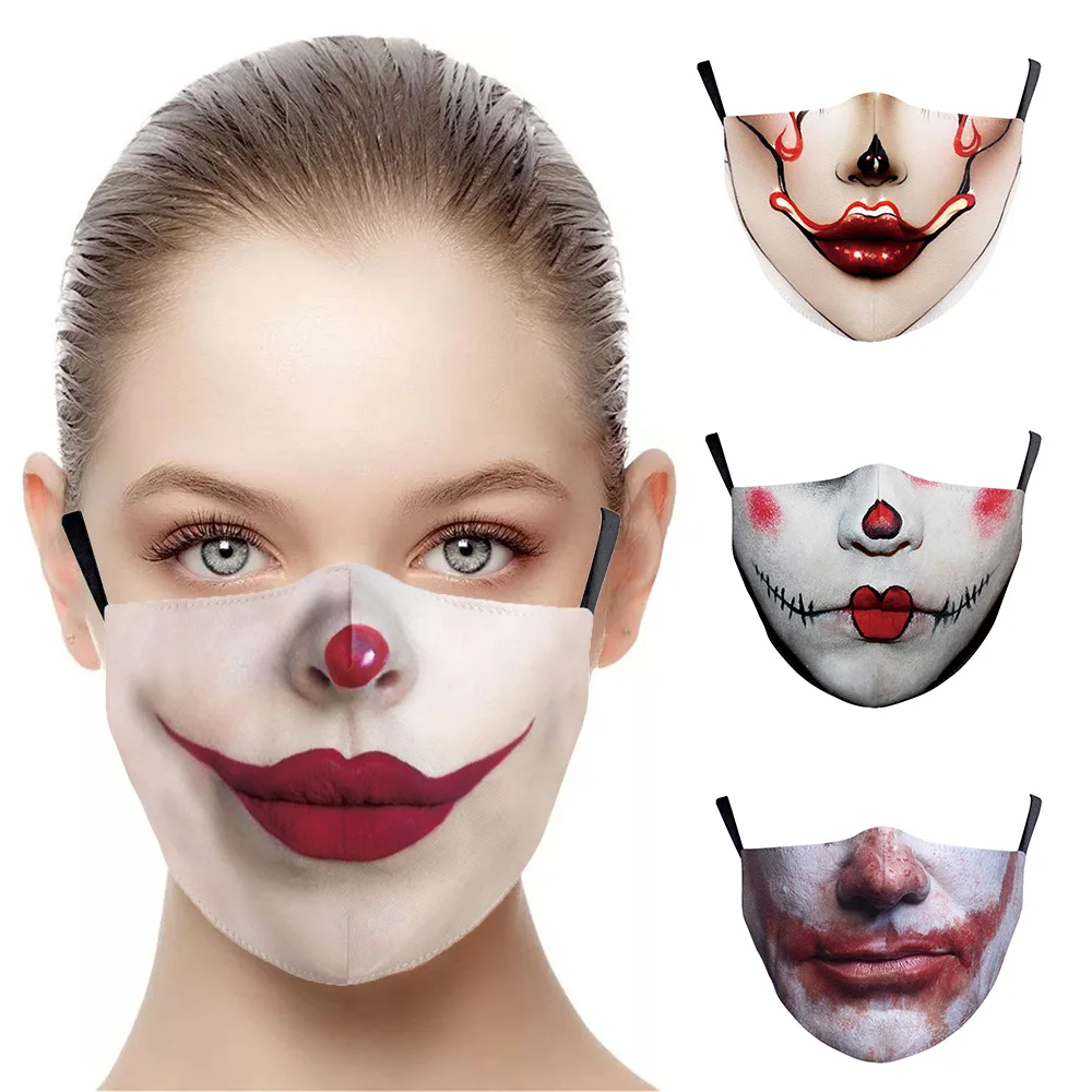 Маски для лица на Хэллоуин с ужасным принтом гримаса для мужчин жен...