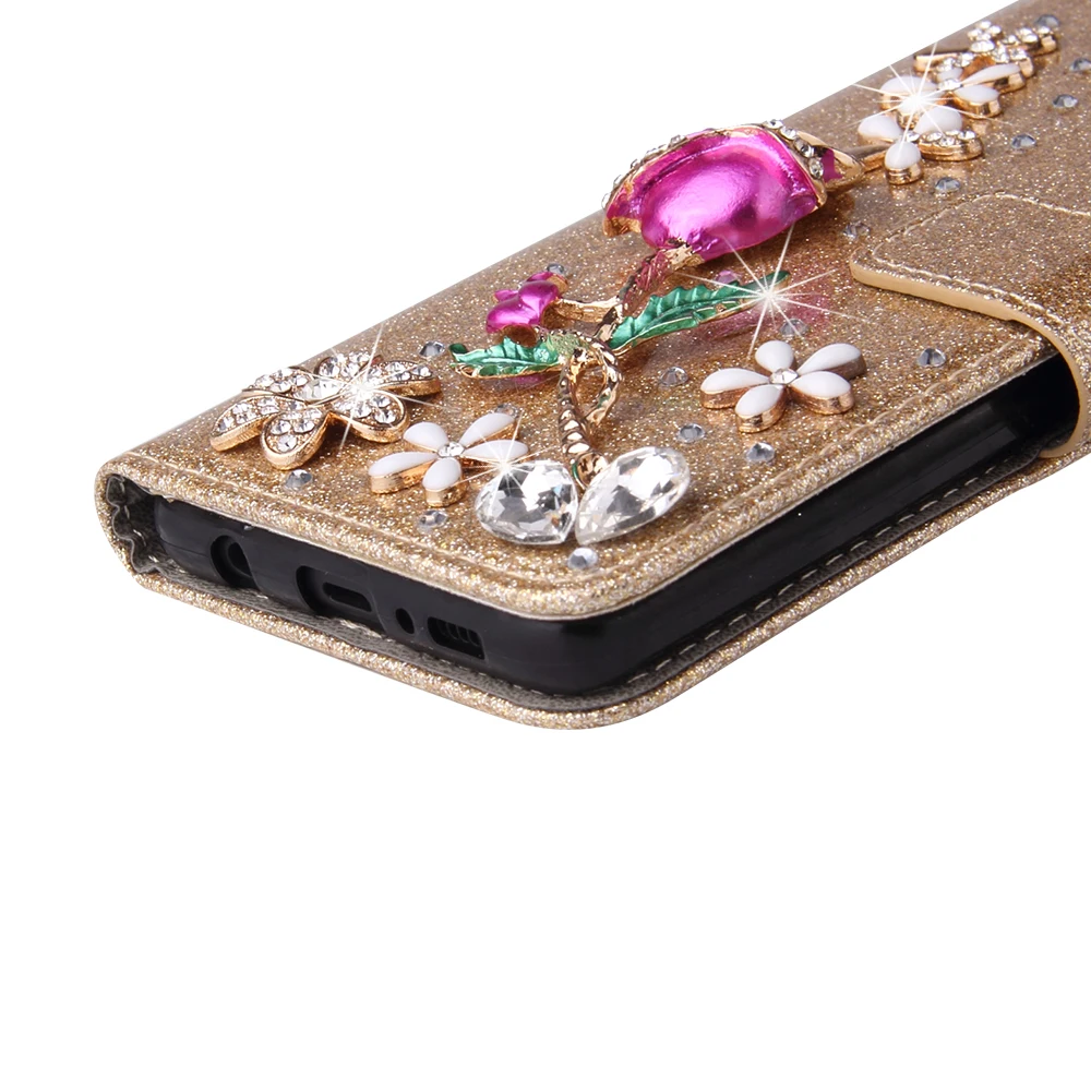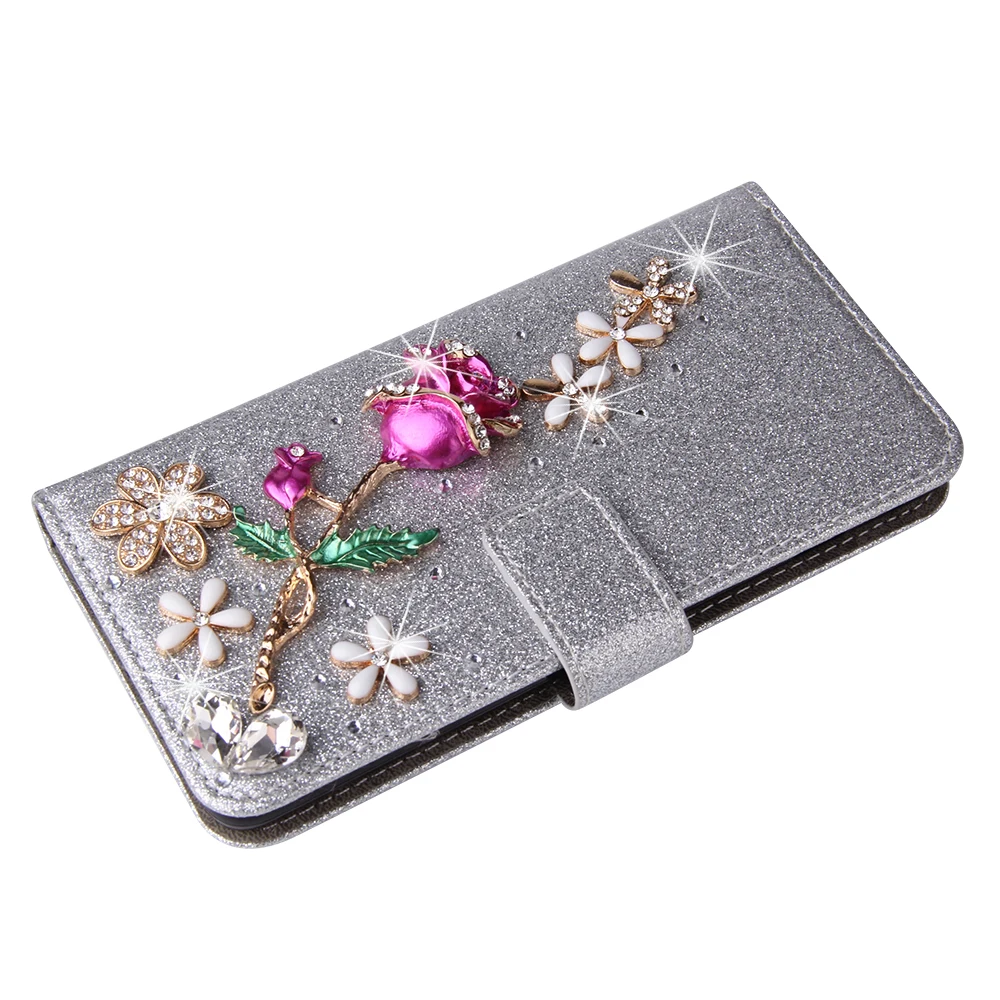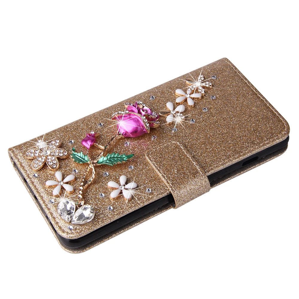 Блестящий чехол для телефона iPhone 12 Mini 11 Pro Max SE2 2020 X XR XS 8 7S 6 6S Plus 5 5S чехол-кошелек с розой