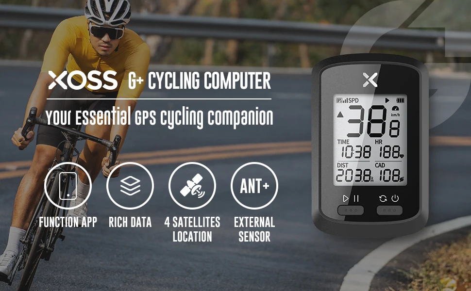 Велосипедный компьютер XOSS G Plus, беспроводной GPS Спидометр, водонепроницаемый, с функцией измерения частоты педалирования, Bluetooth, ANT +