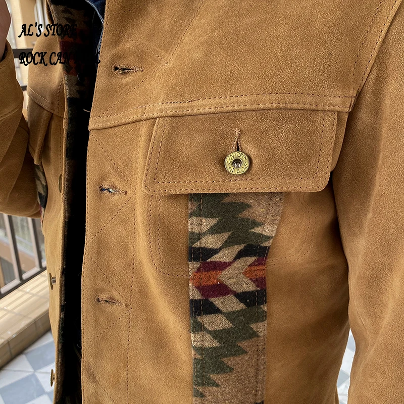 XW399 RockCanRoll прочитайте описание! Супер качество пальто из натуральной коровьей замши и шерсти воловьей кожи стильная прочная куртка Навахо