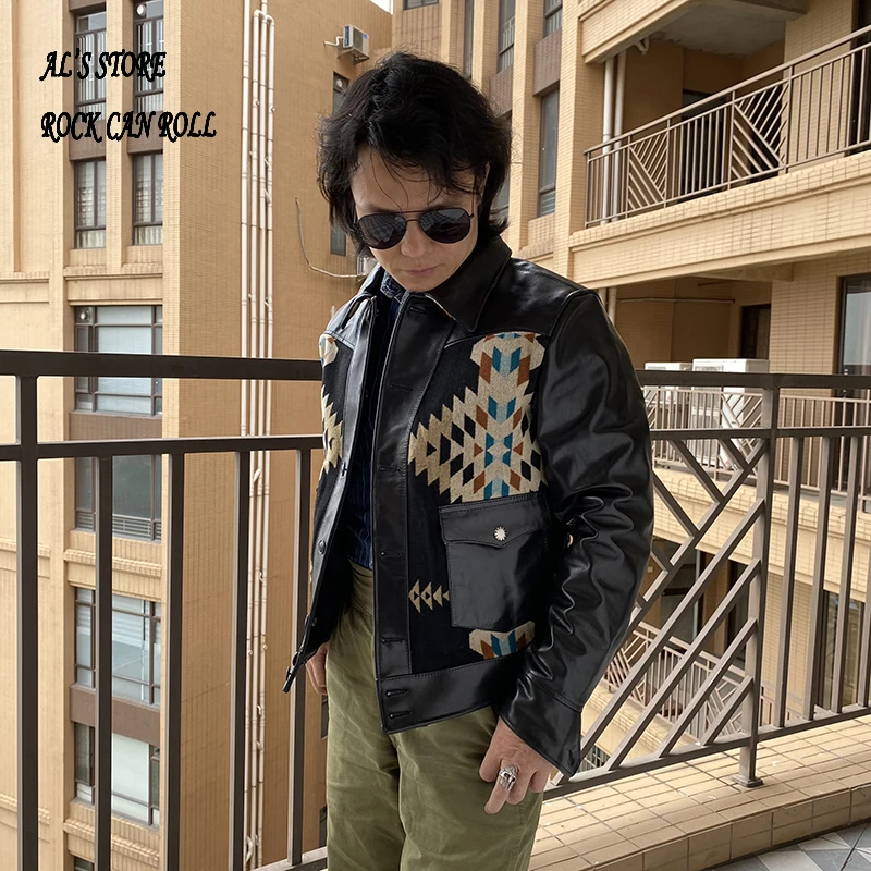 XW599 прочтите описание! Высококачественная натуральная японская лошадиная кожа и шерсть, стильная прочная куртка Навахо