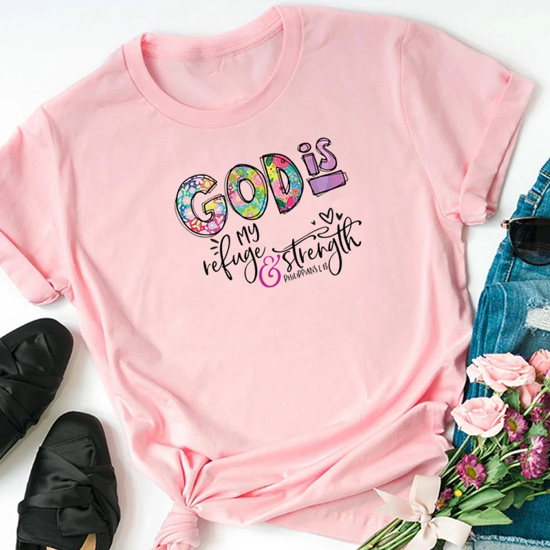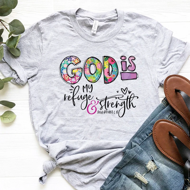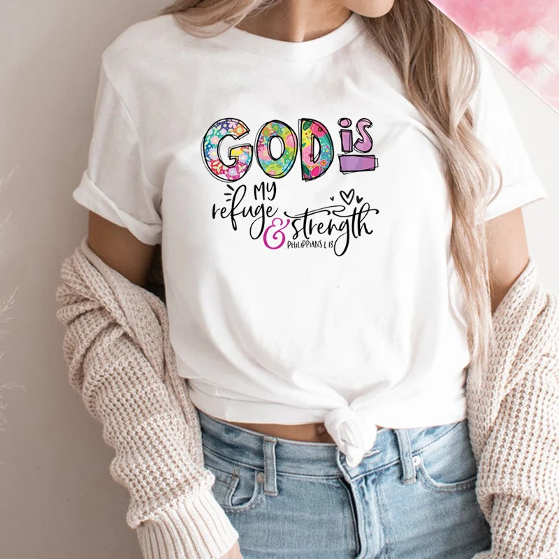 Женская футболка с надписью «God Is My Refuge and Strength Christian Jesus», хлопковая футболка с надписью «Motivational Believer»