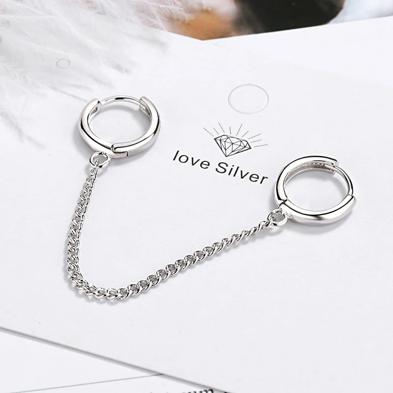 Серьги-кольца женские с двумя отверстиями для пирсинга, гладкие простые кольца на цепочке, блестящие очаровательные ювелирные украшения