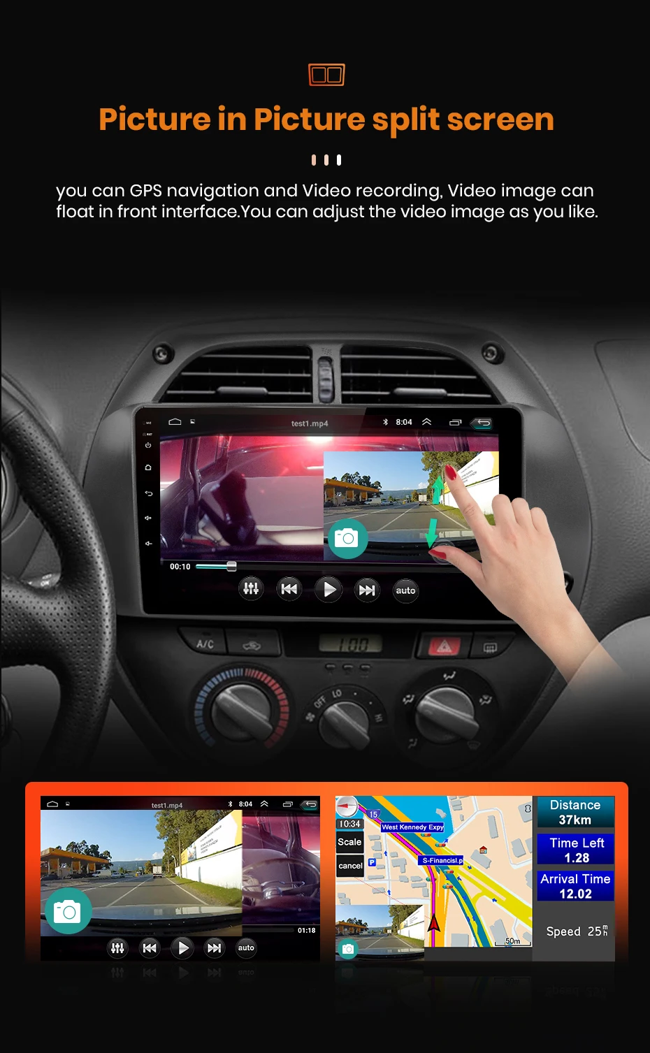 Изображение на изображении (PIP) позволяет вам одновременно смотреть два отдельных входа. У вас будет одна большая фотография с меньшим размером внутри. Например, вы можете увидеть gps-навигацию, а также одновременно воспроизводить запись в реальном времени. Экран позволяет наблюдать за двумя отдельными входами одновременно. У вас будет одна большая фотография с меньшим размером внутри. Например, вы можете увидеть gps-навигацию, а также одновременно воспроизводить запись в реальном времени.