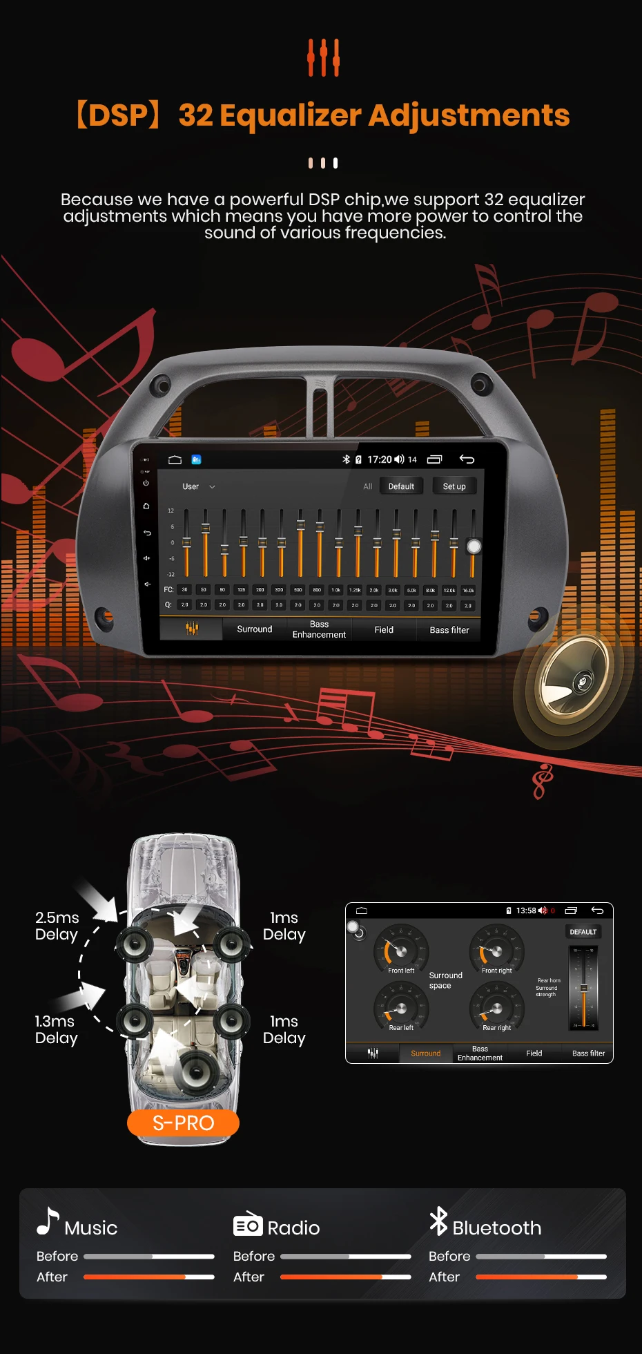 С сильным чип DSP, AWESAFE PX9 поддерживает 32-полосным эквалайзером корректировки, так что вы можете настроить звук varios частот. Он будет соответствовать вашему вкусу и окружающей среде прослушивания. Музыка будет звучать чётко даже при высоких объемах.