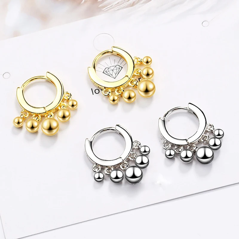 Серьги-кольца женские из серебра 925 пробы, с бусинами и кисточками