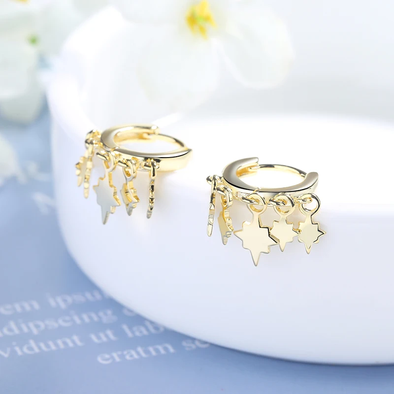 Богемные этнические милые серьги-кольца с маленькими звездами пентаграммы золотые HuggiesОчаровательные креативные серьги для пирсинга подарки