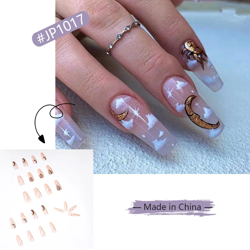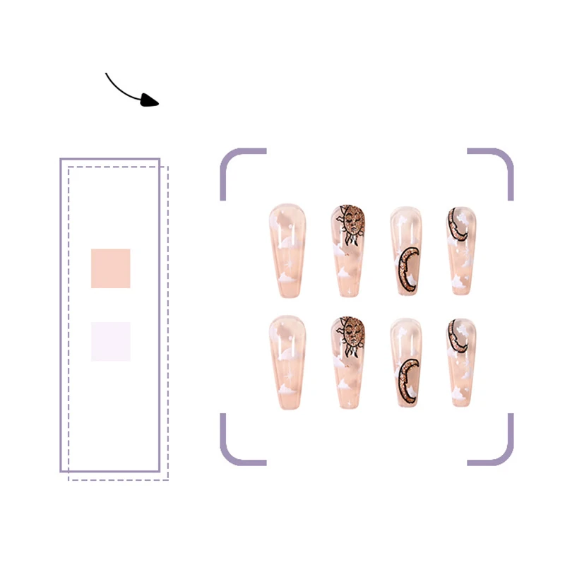 GAM-BELLE, 24 шт., накладные ногти, французский обнаженный, облачный блеск, солнце, луна, узор, прессованные ногти, полное покрытие, длинные балерины, гроб, накладные ногтиОсобенности:12 различных размеров для разных пальцев, 2 наконечника для каждого размера.Для профессионального наращивания ногтей и французского маникюра.Легко использовать с клеем для ногтей или желе двухсторонние клейкие ленты.Легко обрезать и прикрепить их к любой длине и форме, которые вам нравятся.Французский обнаженный облако блеск Солнце Луна шаблон накладные ногтиМатериал: АБС-пластикСтиль: накладные ногти с полным покрытиемПакет включает в себя: 24 шт./компл. накладные ногти + 1 мл клей для ногтейСоветы по использованию:1. Вырезайте, напиливайте и формируйте собственные ногти.2. Очистите свой собственный ноготь.3. Выберите подходящий кончик, сравняя ширину вашего естественного ногтя.4. Приклейте наконечник на ногтевую пластину.5. Выровняйте и формируйте кончик.6. Начните применять УФ-гель или лак для ногтей.