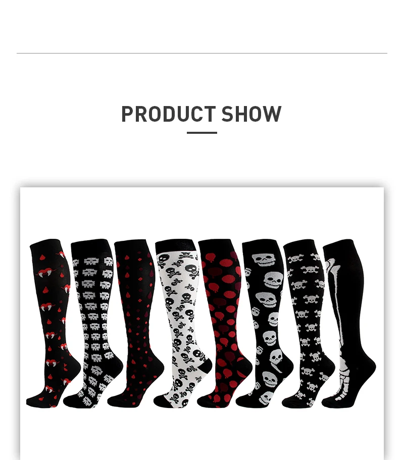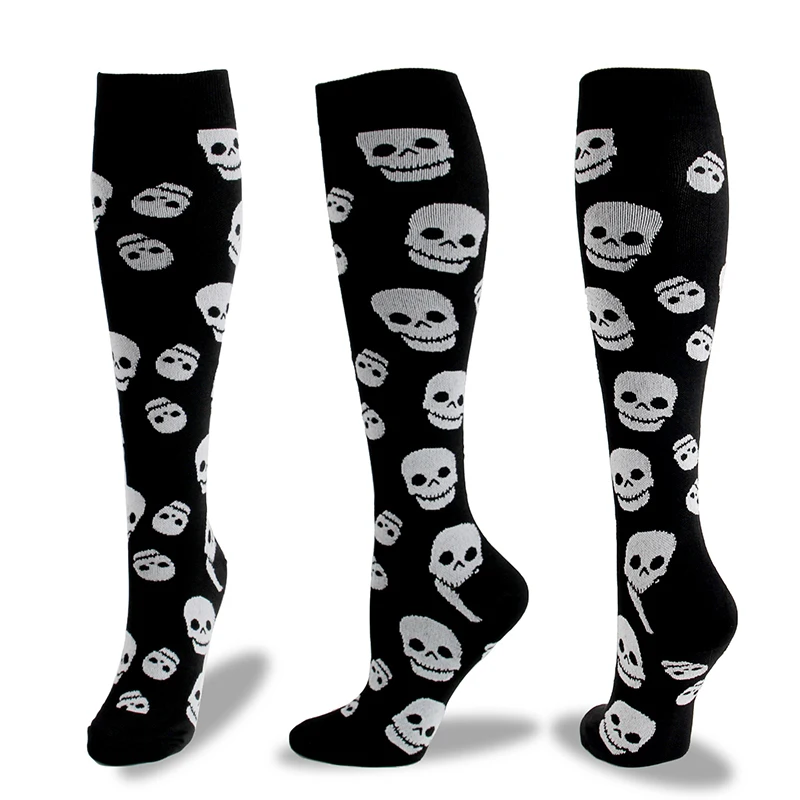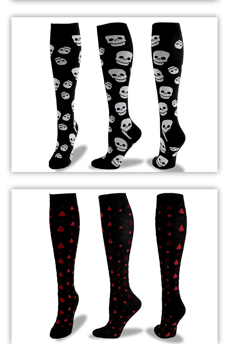 Носки женские компрессионные в стиле унисекс, чулки от диабета, варикозного расширения вен, с рисунком черепа, подарок на Хэллоуин, 58 стилей