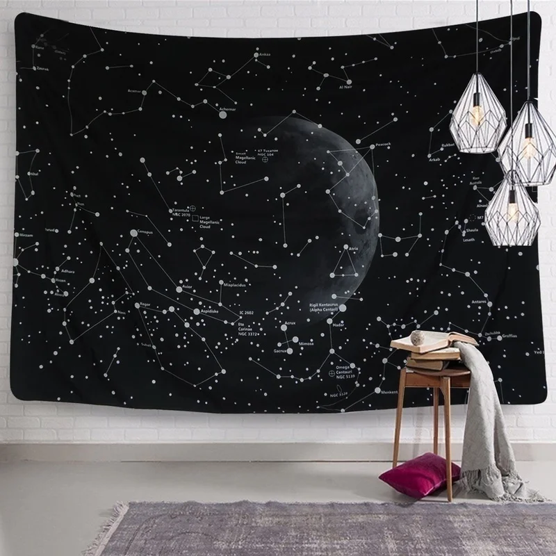 Гобелен с созвездиями, гобелен с космосом, планетами, универсальный гобелен с галактикой, гобелен с Луной и звездами, психоделический гобелен, мандала