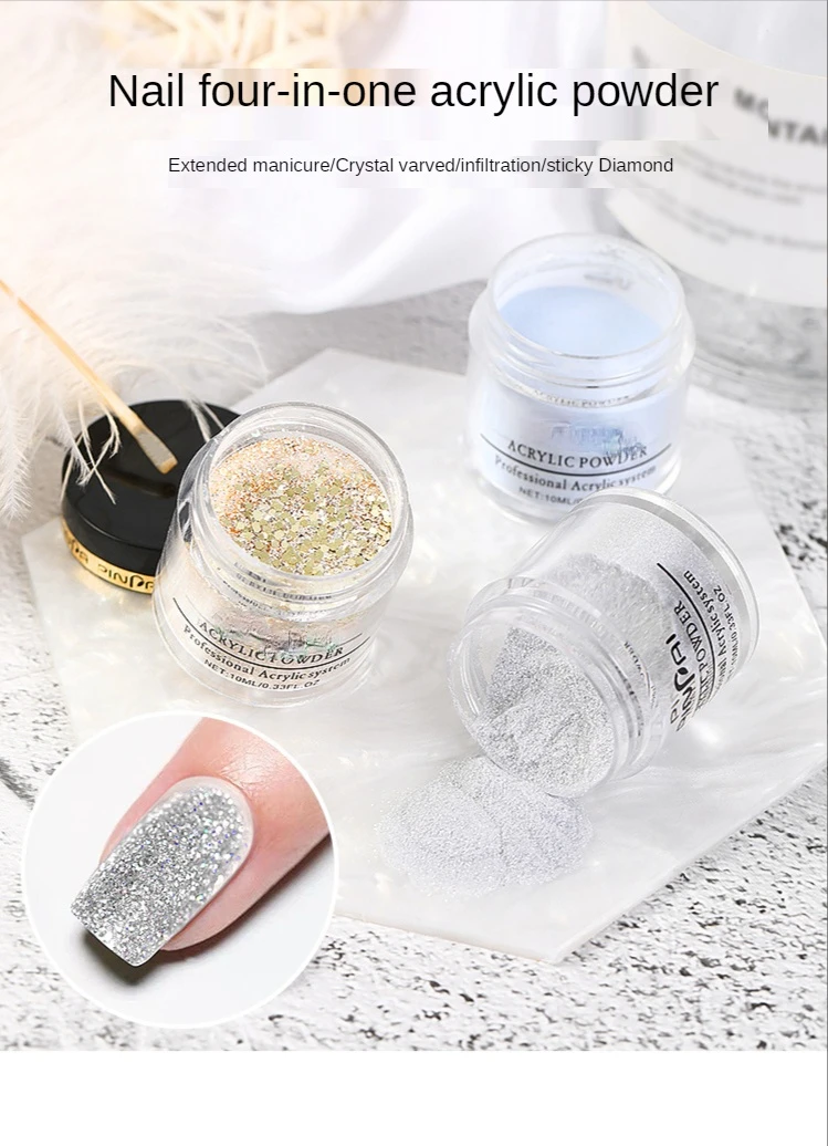 Кристаллический Блестящий Порошок для ногтей, 10 г, четыре вида смешивания и сочетания, инфильтрационная пудра, Резные накладные ногти, декоративный дизайн ногтей сделай сам